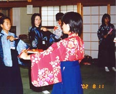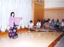 中国支部の下半期の行事は、6月16日の旭川教会(北海道)百年大祭に有志で奏楽の御用を戴き、吉備舞(箙之梅)を演奏し、北海道の皆様に初めての吉備舞を奉納させていただきました。7月31日は尾原初代楽長の墓地に10人でお参りさせていただき、8月18日にはイベントとして日本吟剣支部少年少女大会で四季の景色(花の吹雪)を披露し、8月20日は生神金光大神大祭の曲目を玉水教会控所で新会員と共に練習会及び講習会を行い、95人の参加でした。また、楽員認定試験には、筝3名の合格を戴きました。その他にも分会では、山口、広島で練習を行っています。12月23日には、第19回吉備舞、演奏会を行い、平成14年度の行事を締めくくりました。