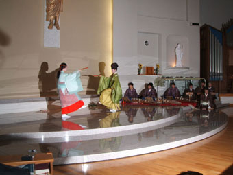 8月28日、北九州教区平和集会の「慰霊と祈り」の中で献水行事が行われました。支部を代表して、太田昭子氏が笙一管で演奏しました。長崎の原爆で水を求めて亡くなられた方々に思いを馳せて、笙の一本吹きの曲想に苦心したということでした。「水の清らかさ、透明感のある清冽な雰囲気が出ていました」との声を頂きました。
