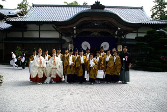また、10月21日には、比叡山延暦寺にて行われた『天台宗開祖1200年平和祈念会』のイベントにおいて、東近畿支部と当中近畿支部合同で約20名が、典楽会本部として参加し、奏楽御用をさせて頂きました。道楽で三管による中正楽、演奏舞では「四季の詠」をご披露いたしました。