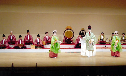 1月24日、岡山県浅口郡里庄町の里庄総合文化ホール「フロイデ」において、「第52回高梁川流域高等学校音楽会ジョイフルコンサート」が開催されました。このコンサートは、岡山県西部を流れる高梁川の本川、支川を擁する市町、また高梁川の水を利用する自治体の高等学校の吹奏楽部やコーラス部が集って毎年開催されているものです。本年は、私たちを含め、20団体の参加がありました。コンサートの運営は、参加校が持ち回りで行っているそうで、今回は、金光学園の担当であったところから、コンサートの中で のゲストとして典楽会に依頼があり、出演させていただくことになりました。 コンサートでは、楽器の紹介や中正楽「四調 春」、吉備舞「花の吹雪」を披露し、普段、出演の生徒さん達が演奏している曲とは趣が異なる音楽や舞の世界に触れていただきましたが、大きな拍手を頂き、「初めて見た」「こんなにいいものが身近にあったとは知らなかった」といった感想を頂きました。 また、当日のパンフレットに、金光教典楽会のことを紹介していただくこともできました。 |